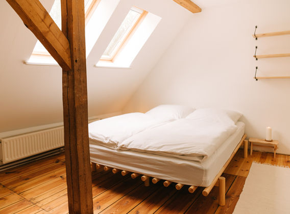 Der Mittelpunkt von NONNA ist das 420 qm große Wohnhaus. Mit seinen hellen, lichtdurchfluteten Räumen, den alten Holzbalken und -böden verströmt es Wärme und Gemütlichkeit. Durch die vielen Fenster des Wohnhauses öffnet sich der Blick in die Landschaft, so dass du drinnen immer auch ein bisschen das Gefühl hast, draußen zu sein.